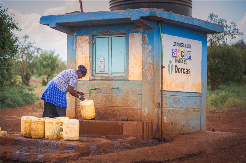 Agnes in Kenia haalt nu water uit de watertap. ‘Voordat Dorcas kwam haalden we altijd water uit de rivier, maar dat water is niet schoon. We kregen te maken met cholera. Met de watertap hebben we voor een eerlijke prijs schoon water. Het helpt ons allemaal, zo helpt het om ziektes in onze gemeenschap te voorkomen.’