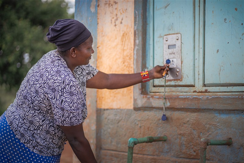 Het water is niet gratis, legt Agnes uit. ‘Mensen die water willen tappen moeten een token aanschaffen om water uit de tap te krijgen. Er is in de gemeenschap een persoon waarbij je je token kan opwaarderen tegen betaling’. Gelukkig is het water niet duur. ‘Voor twintig liter betalen we maar drie (Keniaanse) shilling. Dat is genoeg voor het eten en drinken op een dag. Maar als je kleren wilt wassen heb je extra jerrycans met water nodig. Het is echt niet heel duur, en dat helpt ons enorm. Ik geef per maand ongeveer tweehonderd Keniaanse shilling (ongeveer 1,50 euro) uit aan water’.
