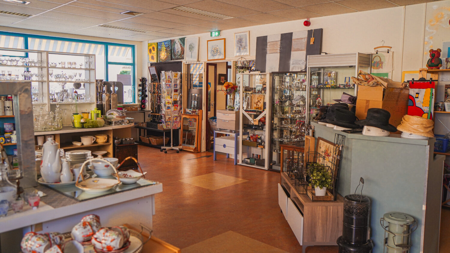 ‘We zijn begonnen in een antikraakpand, een oude bibliotheek’, vertelt bestuurslid Gerlinde Laros. ‘Voor 100 euro huur per maand. Daarna verhuisden we naar een oude middelbare school, voordat deze werd afgebroken. Nu zitten we in een heel oud kantoorpand van ongeveer 800 vierkante meter, vlak bij het centrum van Barneveld. Het is een gezellige winkel. Binnen een paar 100 meter zijn 4, en 2 keer in de maand zelfs 5, kringloopwinkels te bezoeken, maar dat zien we juist als voordeel.’
