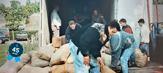 De werkgroep organiseerde uiteindelijk 28 transporten. Een naar achter Rusland, twee naar Moldavië, twaalf naar Roemenië en dertien naar Oekraïne. Vier van deze reizen werden gecombineerd met een klusreis waarin een school en klinieken werd gebouwd en verbouwd. ‘Het eerste transport reed mijn zwager’, vertelt vrijwilliger Henk. ‘Die stelde toen zijn vrachtwagen ter beschikking.’ Vrachtwagens vol etenswaren gingen de grens over, niet altijd zonder slag of stoot. Eén keer hebben ze 183 uur vast gestaan bij de grens van Moldavië. ‘We hadden tonnen bloem in de vrachtwagen, maar dat mocht het land niet in. We moesten alle papieren én onze paspoorten inleveren, en daar stonden we dan. Vrachtwagen aan de ketting.’ Een contactpersoon bij Dorcas kreeg de vrachtwagen gelukkig na verloop van tijd weer op vrije banden. Het gezelschap moest terug Roemenië in voor nieuwe papieren. In de nieuwe papieren stond alleen niet dat er bloem vervoerd werd en dat was toch wel degelijk het geval. Dus de groep kwam weer de grens niet over. Henk: ‘Toen hebben we uiteindelijk de bloem kunnen lossen in Hongarije. Klaar dat we ermee waren!’