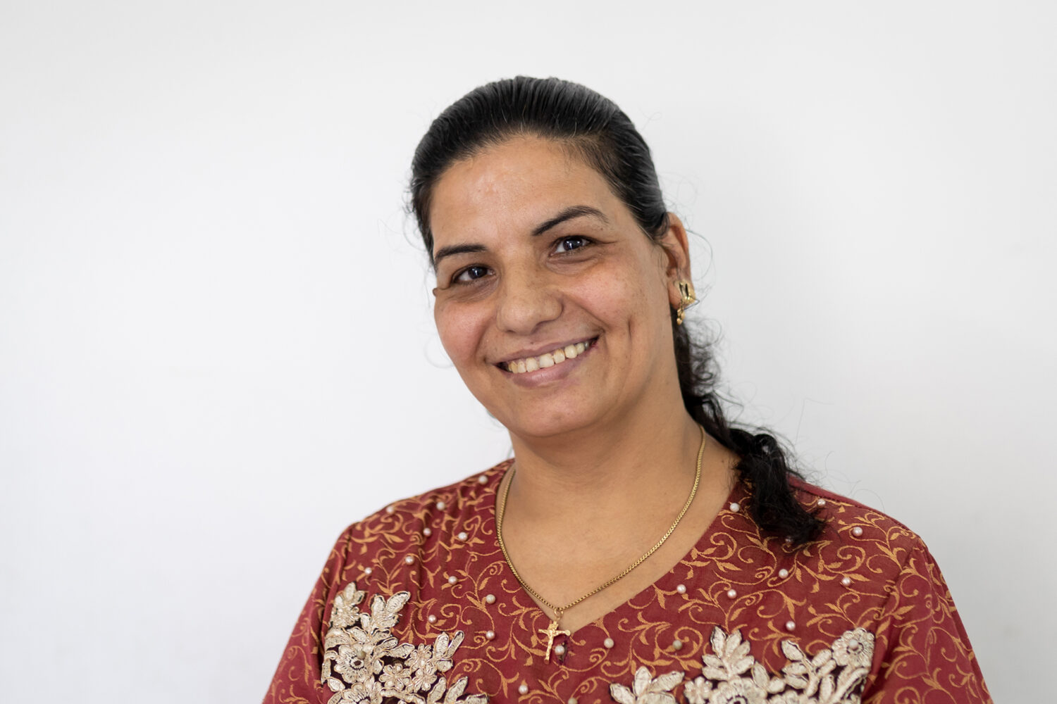 ‘Ik houd enorm van handwerken en wil altijd nieuwe technieken leren. Ik heb eerst een naaitraining gevolgd en ben daarna hier gaan werken. Hierdoor ben ik minder afhankelijk van mijn man, want ik verdien nu mijn eigen geld. Ook geniet ik van het contact met de andere vrouwen en voel ik me zelfverzekerder.