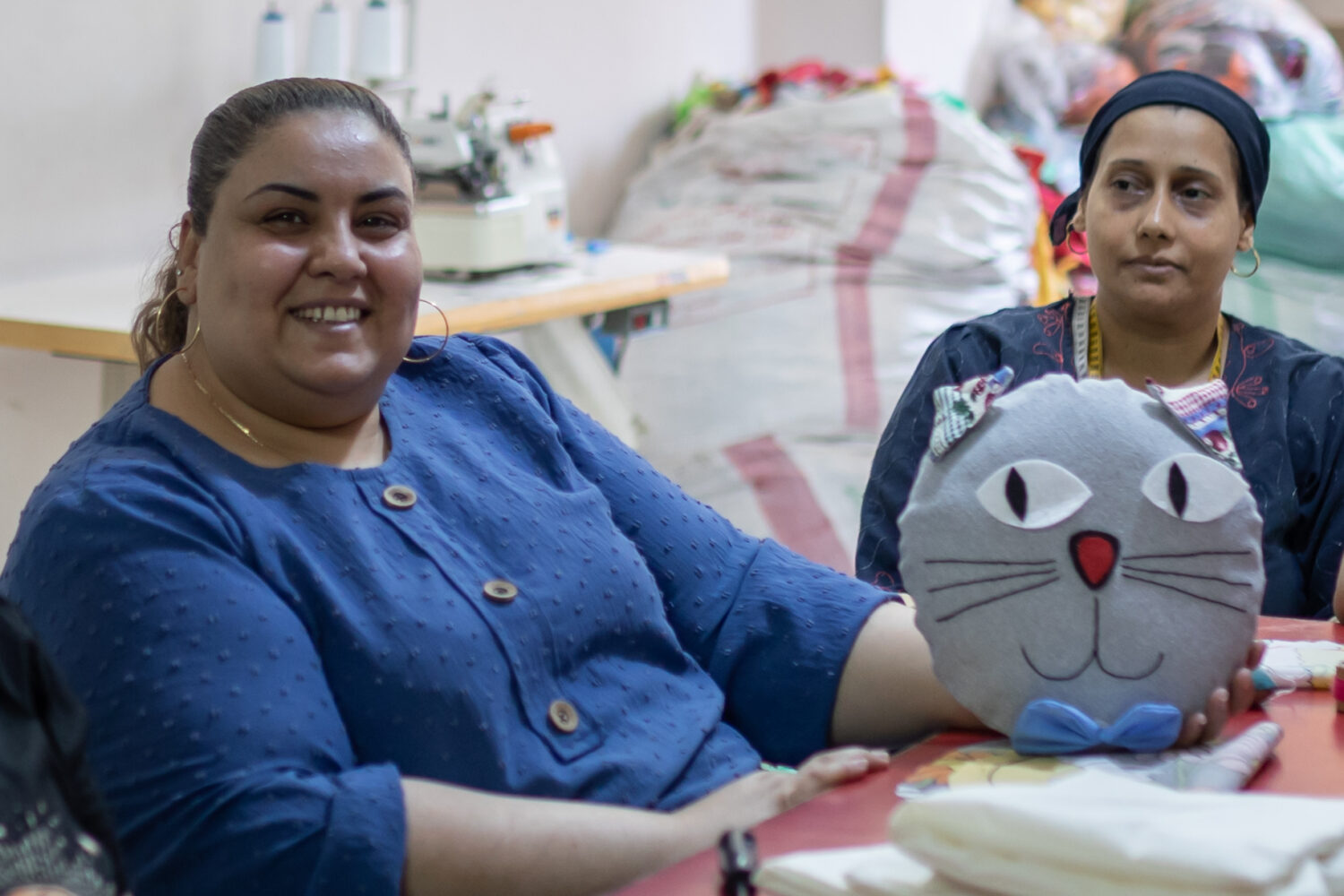 Knuffels, dekens, etuis, tassen én broodzakken. Op de bovenste verdieping van Oasis, het gemeenschapscentrum in de Egyptische hoofdstad Caïro, werken dagelijks tien vrouwen hard aan het maken van allerlei creaties van stof. Ze werken voor commerciële klanten en maken verschillende producten op verzoek. Van de opbrengst ontvangen de vrouwen een salaris en worden de materialen betaald.