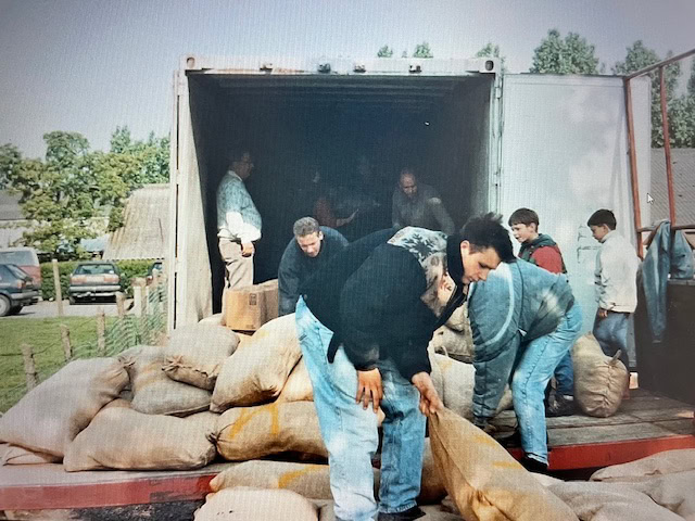 De werkgroep organiseerde uiteindelijk 28 transporten. Een naar achter Rusland, twee naar Moldavië, twaalf naar Roemenië en dertien naar Oekraïne. Vier van deze reizen werden gecombineerd met een klusreis waarin een school en klinieken werd gebouwd en verbouwd. ‘Het eerste transport reed mijn zwager’, vertelt vrijwilliger Henk. ‘Die stelde toen zijn vrachtwagen ter beschikking.’ Vrachtwagens vol etenswaren gingen de grens over, niet altijd zonder slag of stoot. Eén keer hebben ze 183 uur vast gestaan bij de grens van Moldavië. ‘We hadden tonnen bloem in de vrachtwagen, maar dat mocht het land niet in. We moesten alle papieren én onze paspoorten inleveren, en daar stonden we dan. Vrachtwagen aan de ketting.’ Een contactpersoon bij Dorcas kreeg de vrachtwagen gelukkig na verloop van tijd weer op vrije banden. Het gezelschap moest terug Roemenië in voor nieuwe papieren. In de nieuwe papieren stond alleen niet dat er bloem vervoerd werd en dat was toch wel degelijk het geval. Dus de groep kwam weer de grens niet over. Henk: ‘Toen hebben we uiteindelijk de bloem kunnen lossen in Hongarije. Klaar dat we ermee waren!’