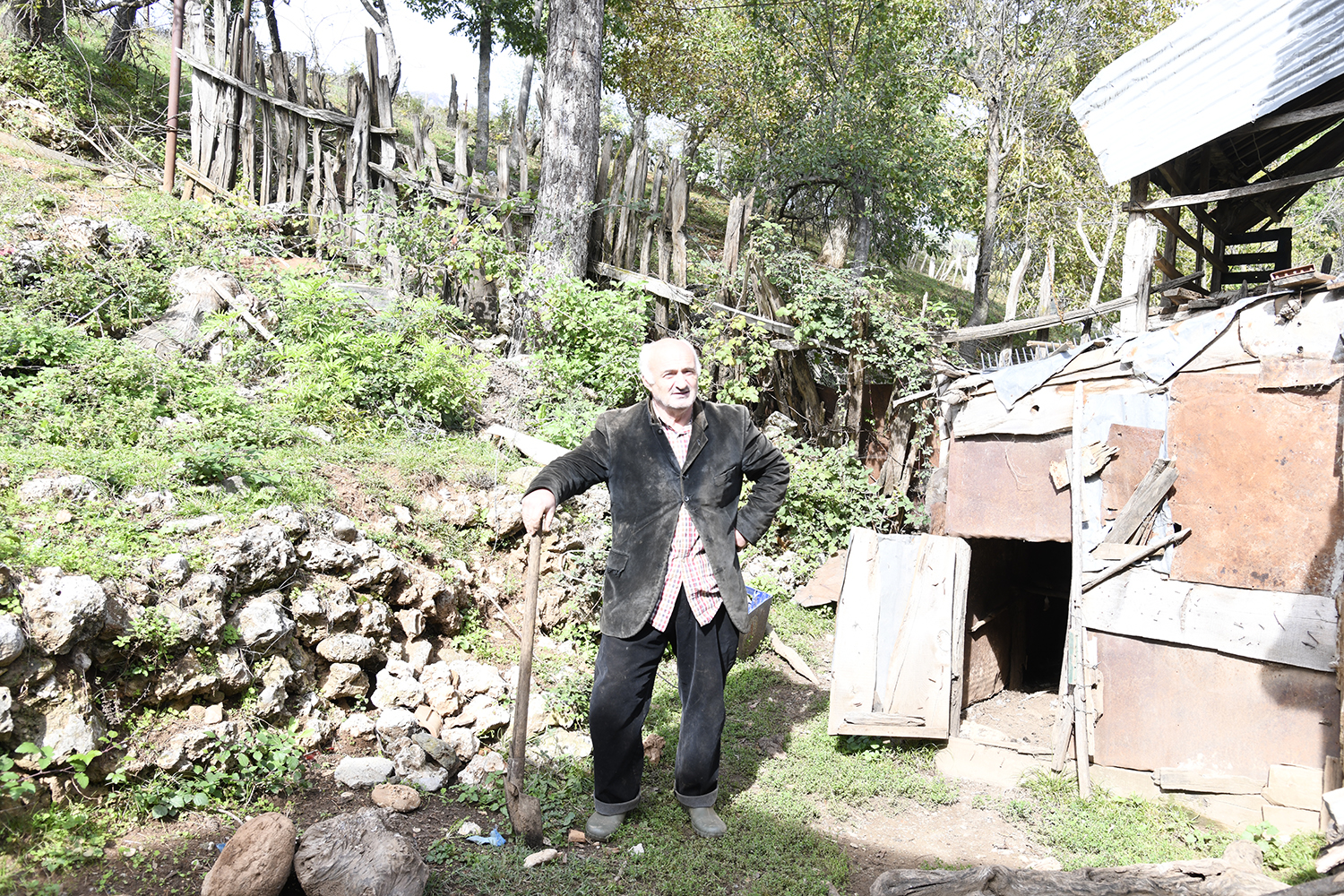 Demush zorgt voor de tuin, dieren en de houtvoorraad