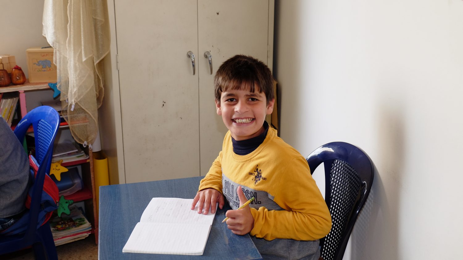 Majd draait inmiddels een paar maanden mee in het kinderproject in het buurtcentrum dat Dorcas in Aley heeft opgezet. Majd gaat ook naar een speciale school, omdat hij een ontwikkelings- en leerachterstand heeft. Het team is enthousiast over de ontwikkeling die Majd doormaakt. Hij leert sociale en andere vaardigheden, zoals het opmaken van zijn bed en opruimen. Hij speelt met andere kinderen en hij is vrolijk en opgewekt door de aandacht en liefde die hij in het project krijgt.