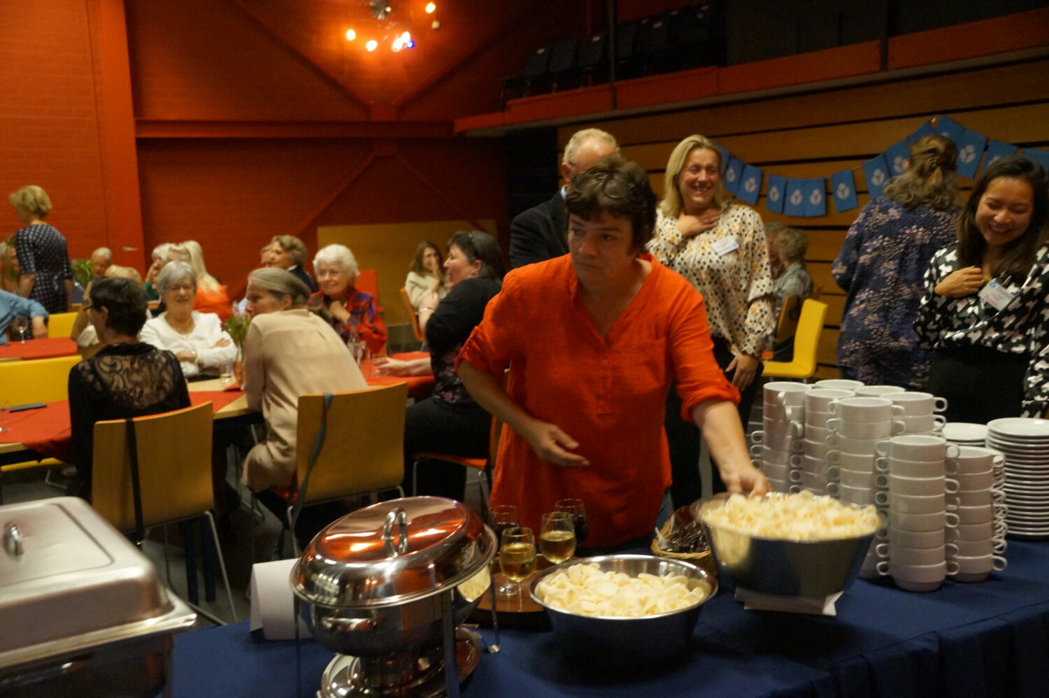 De viering van het jubileum begon op woensdag 21 september met een feest voor de vrijwilligers. ‘Daarvoor hadden we het gebouw van de overburen afgehuurd, theater De Luifel. We hadden de hele theaterzaal versierd met vlaggetjes en posters. We hebben een pubquiz gehouden, relatiebeheerder Ronald gaf een presentatie over het bijenproject in Kenia en de burgemeester hield een speech. Wat heel leuk was: het oprichtingscomité van 10 jaar geleden was er ook. Zij hebben ons een groepsfoto cadeau gedaan en die groot laten afdrukken om in de winkel te hangen. Er was een groot Indisch buffet en een live muzikant zorgde ervoor dat de voetjes van de vloer gingen. Aan het eind stonden we in een grote kring en zongen we You’ll never walk alone. Dat vond ik heel ontroerend. Heel veel feestelijkheden dus – echt een topdag!’