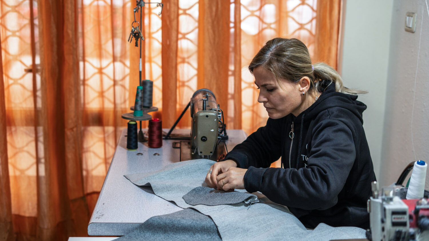 Gelukkig is er een lichtpuntje. ‘Met de eenmalige gift van Dorcas en wat spaargeld van mezelf kan ik een nieuwe automatische naaimachine kopen’, vertelt Emirjona met een glimlach. De naaimachine naait zo snel en makkelijk dat ze hetzelfde aantal jassen per dag kan maken, maar drie uur minder lang bezig is. ‘Dat scheelt enorm. Op sommige dagen kan ik dan langer bij mijn kinderen zijn en op andere dagen kan ik meer jassen naaien en dus meer verdienen. De nieuwe machine heeft me meer ruimte gegeven.’