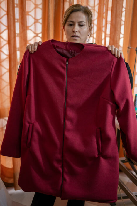 Het leven in Albanië is duur. Eén van de inkomens van het gezin gaat volledig op aan huur. Emirjona krijgt twee euro per gemaakte jas. Om rond te komen moet ze vijftien jassen per dag maken en dat zes dagen lang. Regelmatig maakt ze werkdagen van twaalf uur. Soms heeft ze nog extra kosten: ze krijgt niet altijd genoeg stof en garen, en de patronen komen ook niet altijd met instructies. In de afgelopen jaren zijn haar inkomsten niet gestegen, terwijl de prijzen wel hoger zijn. ‘Maar als ik voor de kleren ga vragen, dan vinden ze wel iemand anders die de kleding wil naaien.’