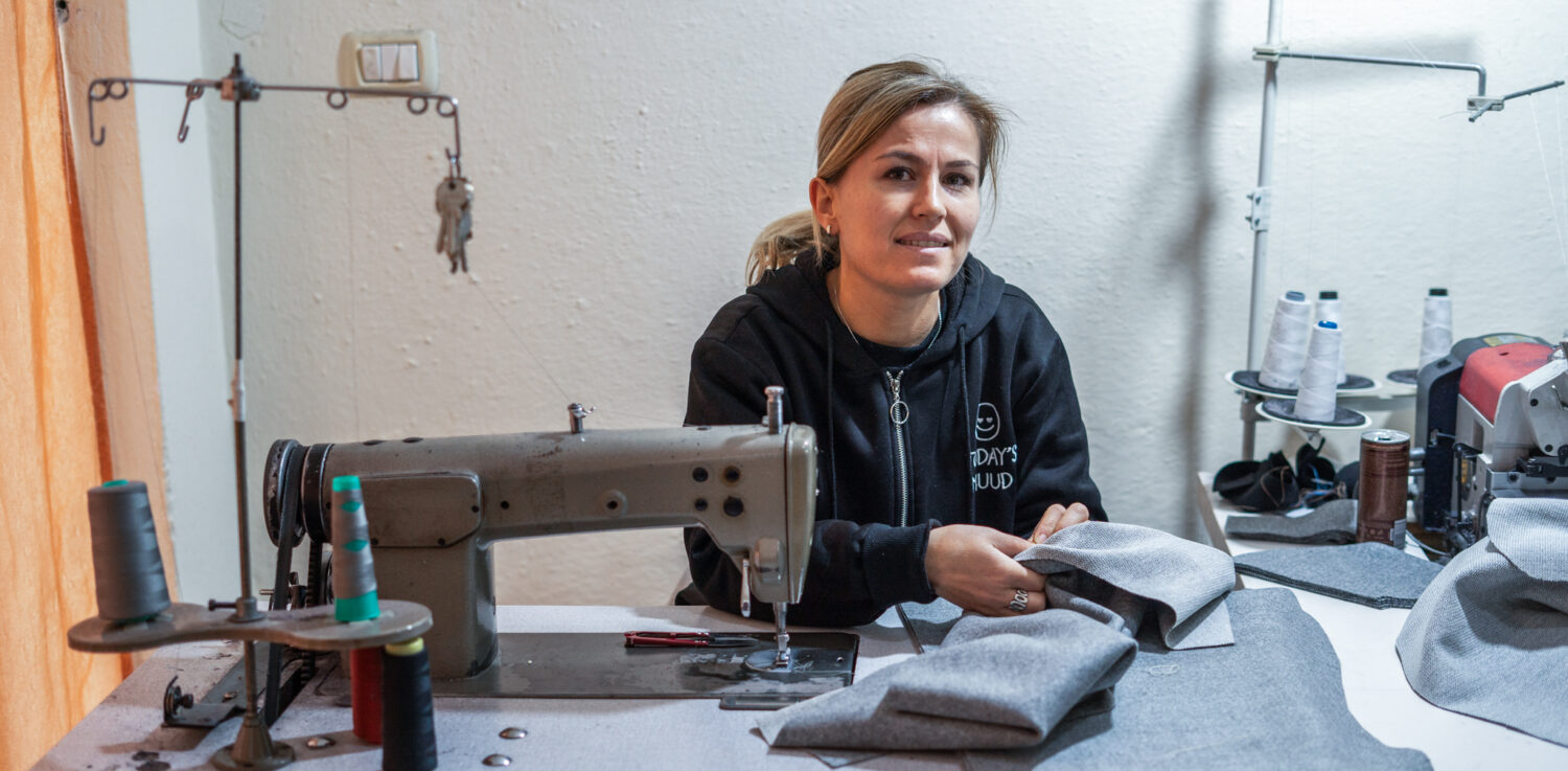 ‘Naaisters in grote bedrijven krijgen meer betaald, maar zijn ook hele dagen van huis weg’, vertelt Emirjona. ‘En dan kan ik niet voor de kinderen zorgen. Mijn eigen naaiatelier is dichtbij ons huis. Als er iets is kan ik zo naar haar huis lopen.’