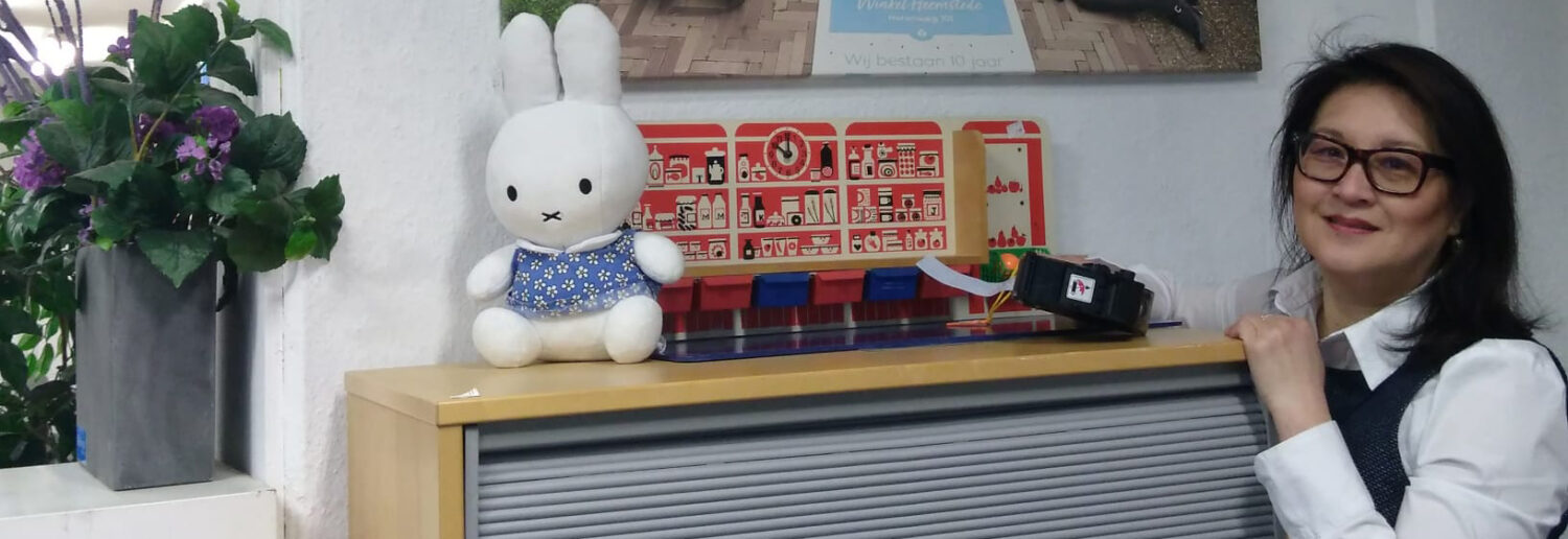 Vanaf het eerste uur is de 55-jarige Thing Thing Tan als vrijwilliger betrokken bij Dorcas Winkel Heemstede. Ze is een enorme liefhebber van rommelmarkten, tweedehands spullen en kringloopwinkels en geniet volop van het werk in de winkel. ‘Ik houd van spullen met een verhaal en koop elke keer wel wat. Ik heb zo veel gekocht in al die jaren dat ik eigenlijk zelf in een kringloopwinkel woon.’