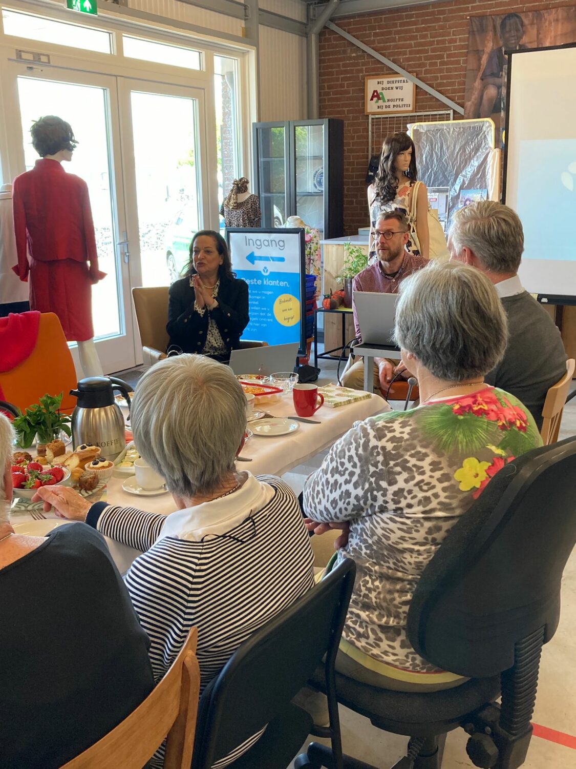 De winkel in Zierikzee combineerde het bezoek van landendirecteur Najla Chahda van Syrië en Libanon met een high tea, vertelt voorzitter Edith Bin: ‘Najla begon haar presentatie met een stukje geschiedenis van beide landen. Daarna vertelde ze welke projecten Dorcas in Libanon heeft en na een korte pauze werden de projecten uit Syrië gedeeld. Het was een zeer leerzame middag, mooi om te horen wat Dorcas allemaal doet voor mensen in deze landen. Vaak onder zeer moeilijke omstandigheden. Najla werd door onze vrijwilligers zeer gewaardeerd en hartelijk bedankt. We hebben haar verrast met een mandje Zeeuwse producten. Het was samen met de high tea een geslaagde middag.’ Na afloop heeft Najla samen met haar tolk en haar chauffeur (relatiebeheerders Marco en Evert) nog wat sightseeing gedaan in Zierikzee en een hapje gegeten.