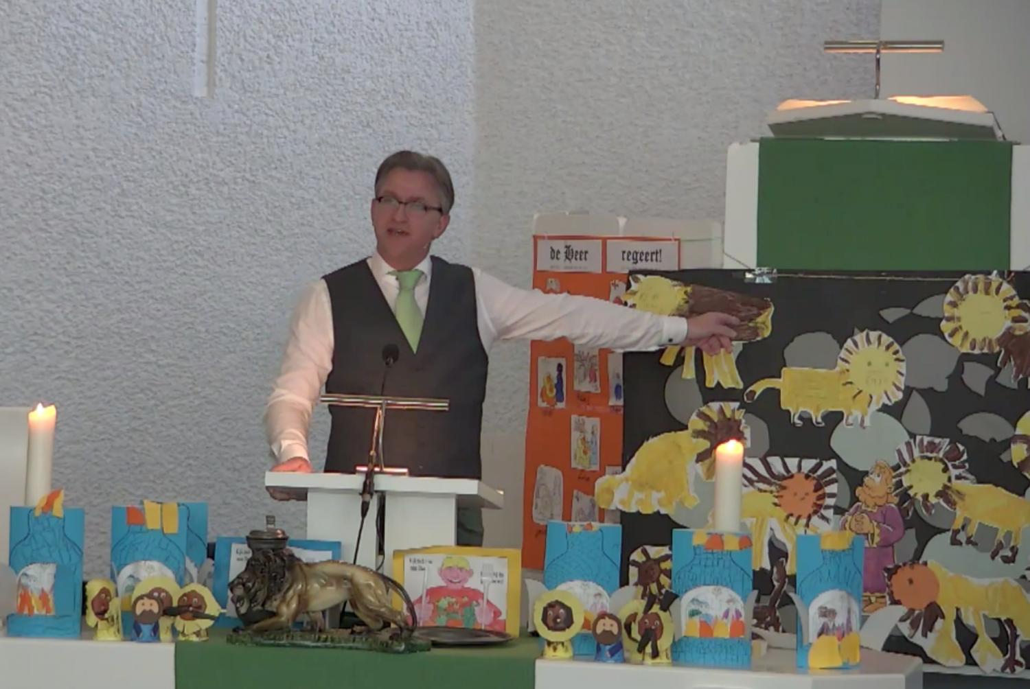 De sfeer zat er, bij het zingen van het themalied (‘Daniël, Daniël, vertrouw op God, Hij hoort je wel’) meteen goed in. Ook de preek werd goed ontvangen. Na afloop van de dienst ontvingen we daar veel positieve geluiden over.