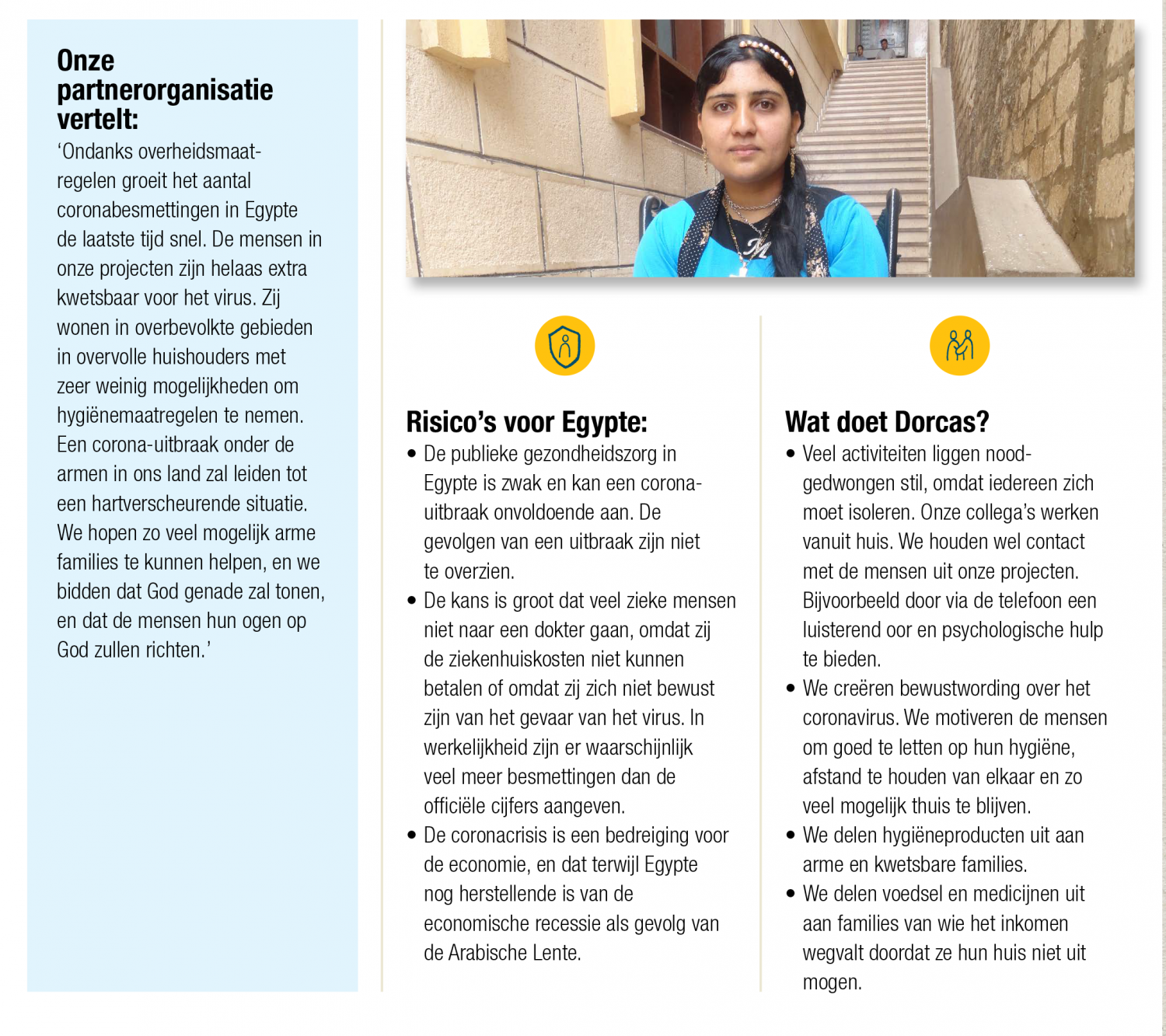 Update: corona in Egypte 14 april 2020 Laatst bijgewerkt: 14 april 2020. Vorig bericht Een inkijkje in het leven van een Dorcas-vrijwilliger in tijden van corona Volgend bericht ‘Ik ben nog maar 26, maar ik voel me zo veel ouder’